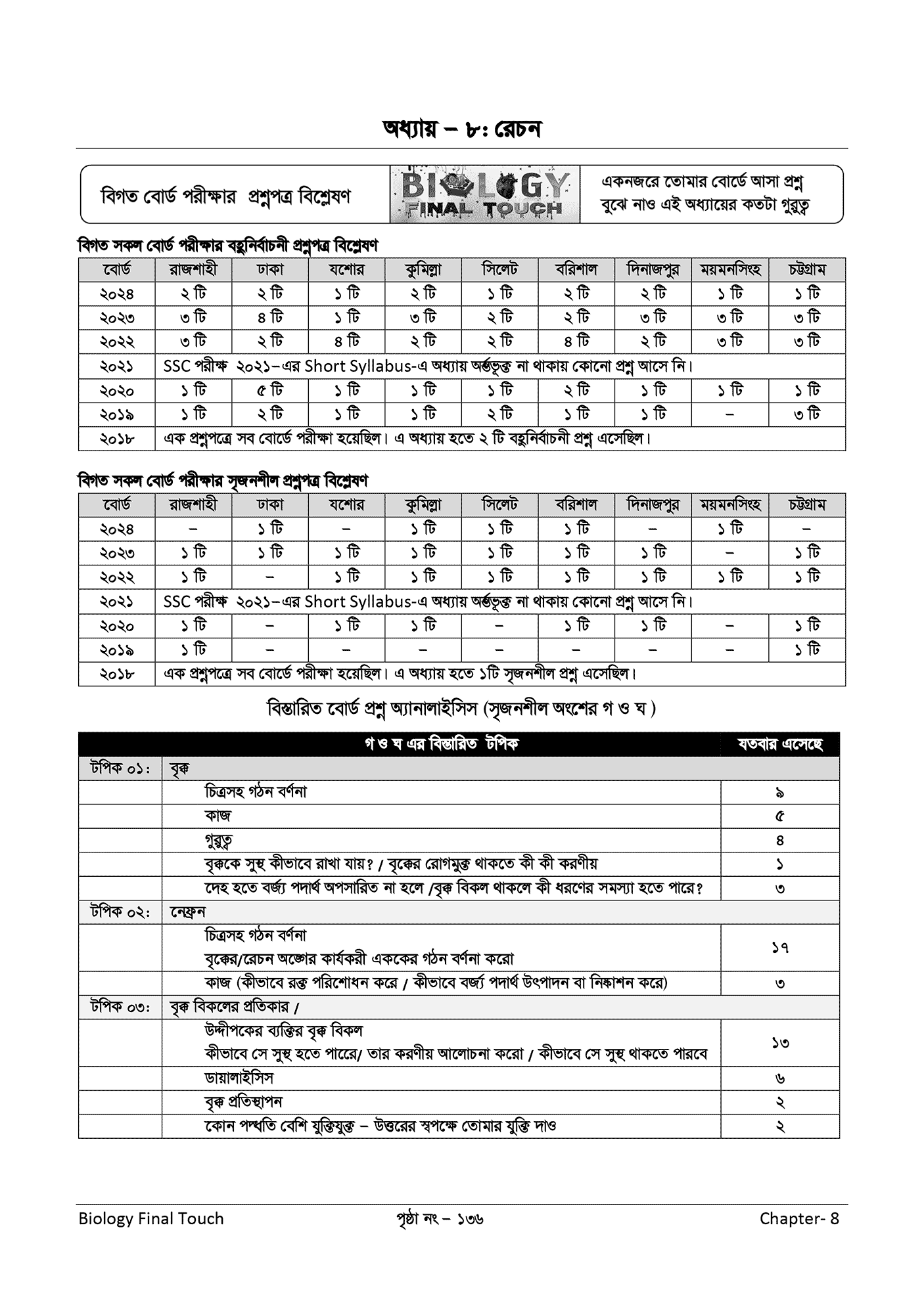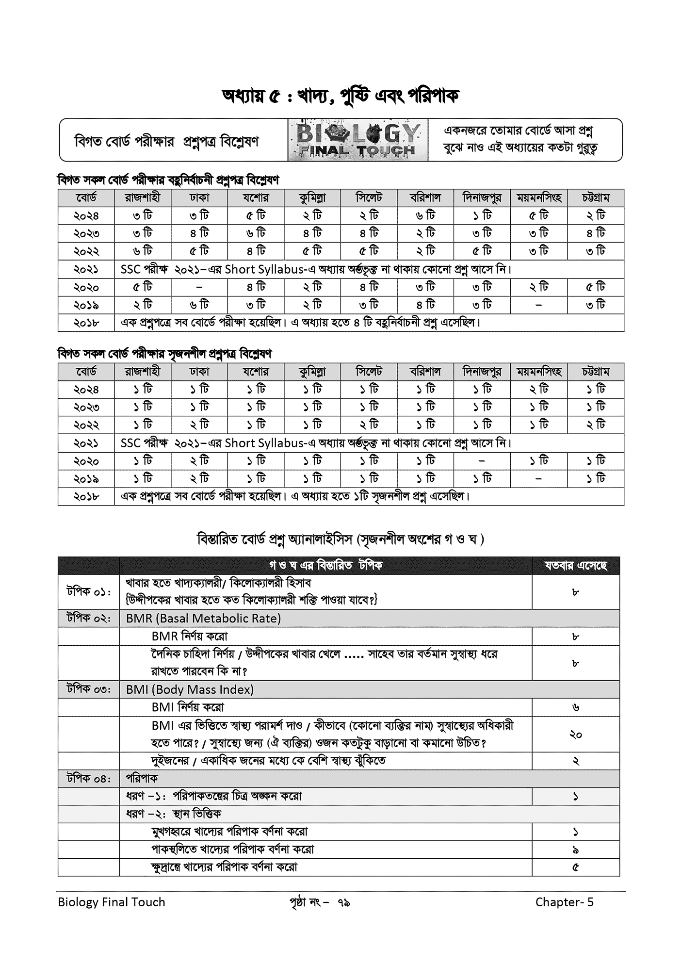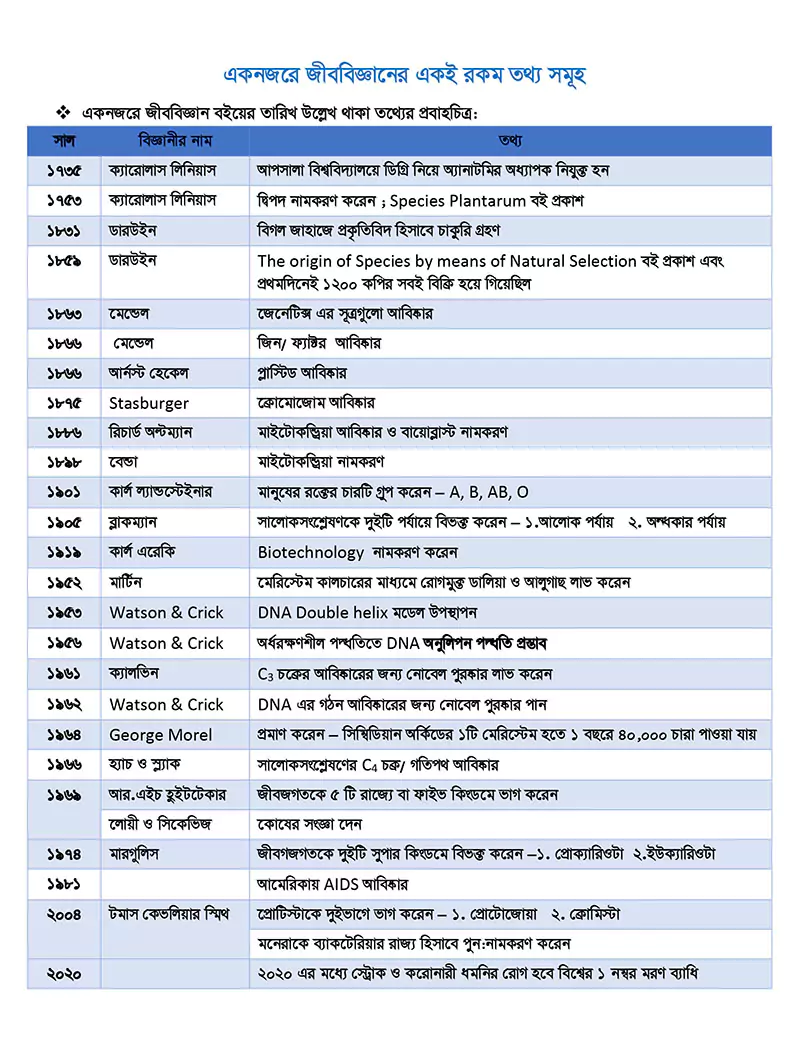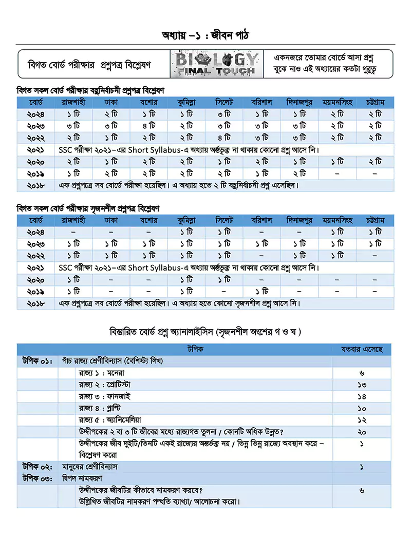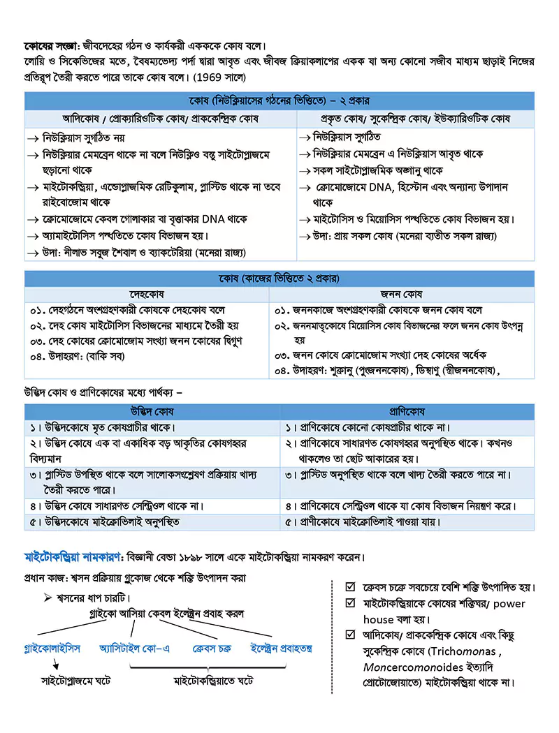 বায়োলজি বোর্ড বইয়ের গুরুত্বপূর্ণ তথ্য, গাইড ও বিগত বোর্ড পরীক্ষার প্রশ্ন ও টেস্ট পেপার অ্যান্যালাইসিস করে শুধুমাত্র গুরুত্বপূর্ণ তথ্য সম্বিলিত শর্ট নোট।