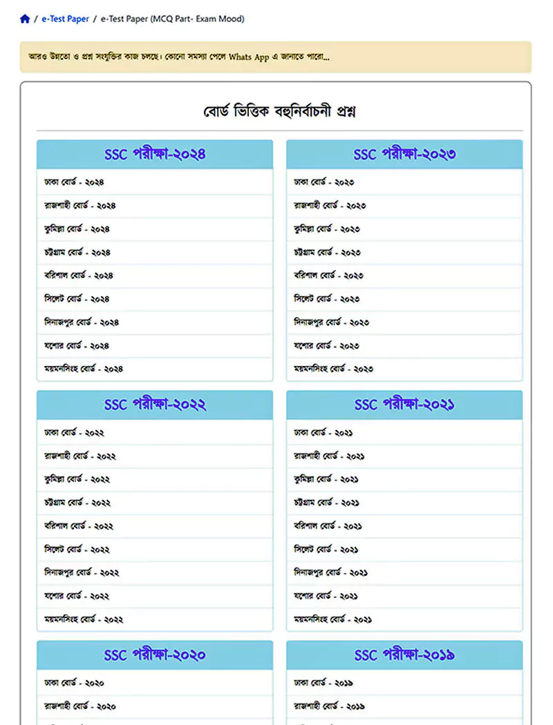 SSC 2018 থেকে 2024 পর্যন্ত সকল বোর্ড (সৃজনশীল ও বহুনির্বাচনী প্রশ্ন) প্রাকটিস ও একাধিকবার পরীক্ষা দেওয়ার সুবিধা!