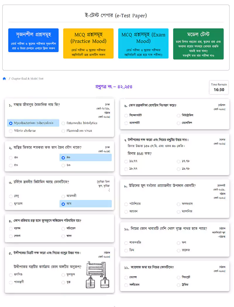 প্রতি অধ্যায়, বোর্ড ও টপিক ভিত্তিক পরীক্ষার প্র্যাকটিস! এবং যত খুশি ততবার নতুন প্রশ্নে পরীক্ষা দেবার সুযোগ, সঙ্গে সঙ্গে রেজাল্ট ও ভুলের ব্যাখ্যা!